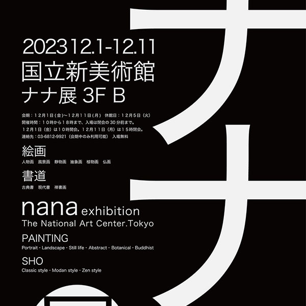 [vc_row css_animation="" row_type="row" use_row_as_full_screen_section="no" type="full_width" angled_section="no" text_align="left" background_image_as_pattern="without_pattern"][vc_column][vc_column_text]2023年ナナ展、2度目を迎えます。